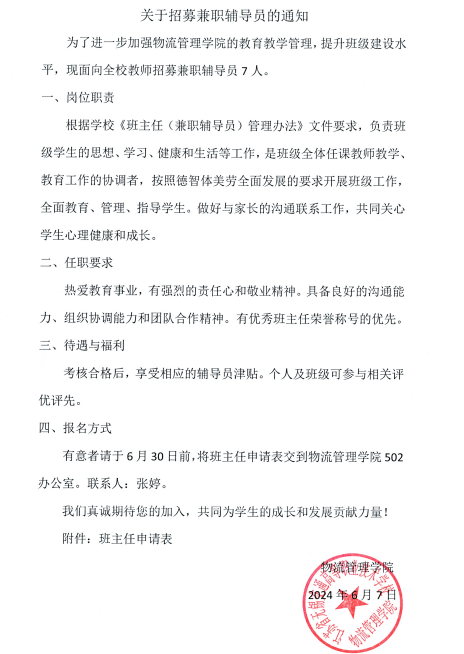 关于招募兼职辅导员的通知