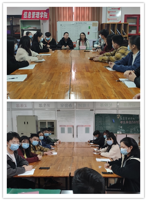 33日中午12点,信息管理学院学生会在政德楼学生会办公室召开新学期学生干部培训会议。学院团总支书记朱沛老师,学工办干事王得雪老师,主席团成员和各部门部长、副部长参会,会议由朱老师主持。