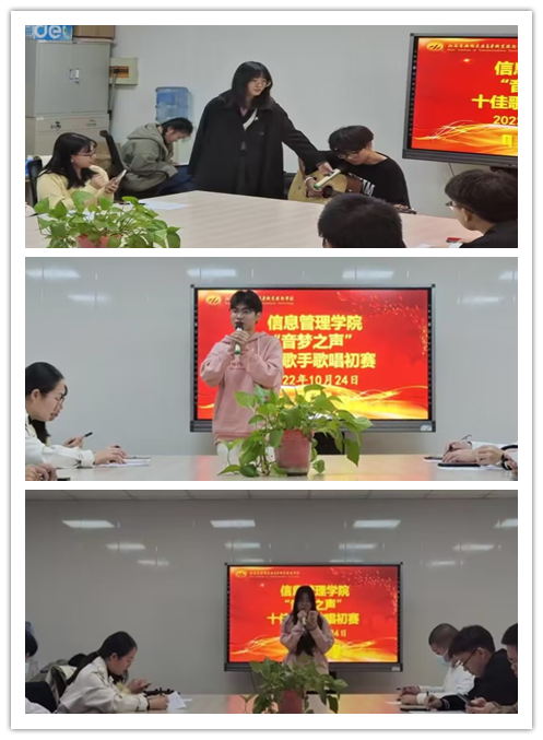 丰富学生的课余生活,激发同学们的兴趣爱好,营造积极健康的校园文化氛围,展现学生阳光向上的精神风貌。20221024日中午12:30,信息管理学院在正德楼三楼会议室举办“十佳歌手”初赛。学校合唱团指导老师周琪、张婉杰担任评委。