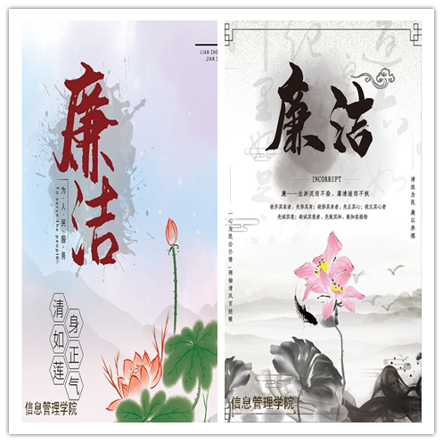 为深入开展廉洁教育,传播廉洁文化,帮助学生充分认识“崇清尚廉”的重要性,自觉将诚信清廉意识内化于心,外化于行,共建清廉学术氛围,信息管理学院特此开展“崇清尚廉”主题海报活动。