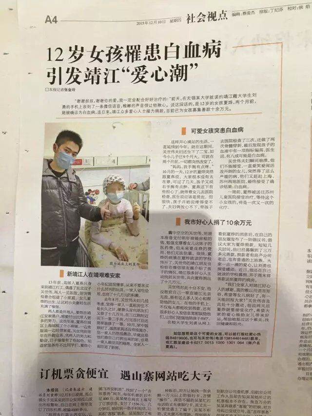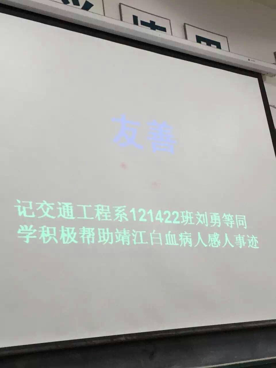 在创业之余,刘勇同学多次献身于慈善活动中。同时,在系部书记和班主任老师的指导下,在121422班和交通工程系发起了对靖江白血病儿童夏烨的募捐活动。并且和系部2位老师亲自将善款送到苏州儿童医院病人的家长手中,帮助白血病儿童夏烨。